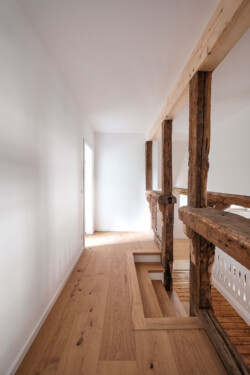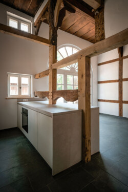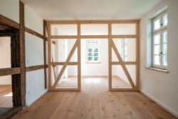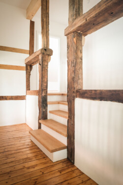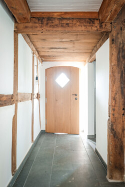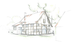 Ziel des Entwurfs war es, den Denkmalwert der Hofstelle zu erhalten, indem die Gebäude instand gesetzt und teilweise einer neuen, zeitgemäßen Nutzung zugeführt wurden. Hierzu wurde behutsam mit der erhaltenswerten Substanz umgegangen. Um im gesamten Wohnhaus eine angemessene Wohnnutzung zu ermöglichen, wird vor allem eine bessere Belichtung und eine zeitgemäße Raumgestaltung angestrebt. Dennoch bleibt die charakteristische Raumstruktur im Inneren des Hauses weiterhin ablesbar.