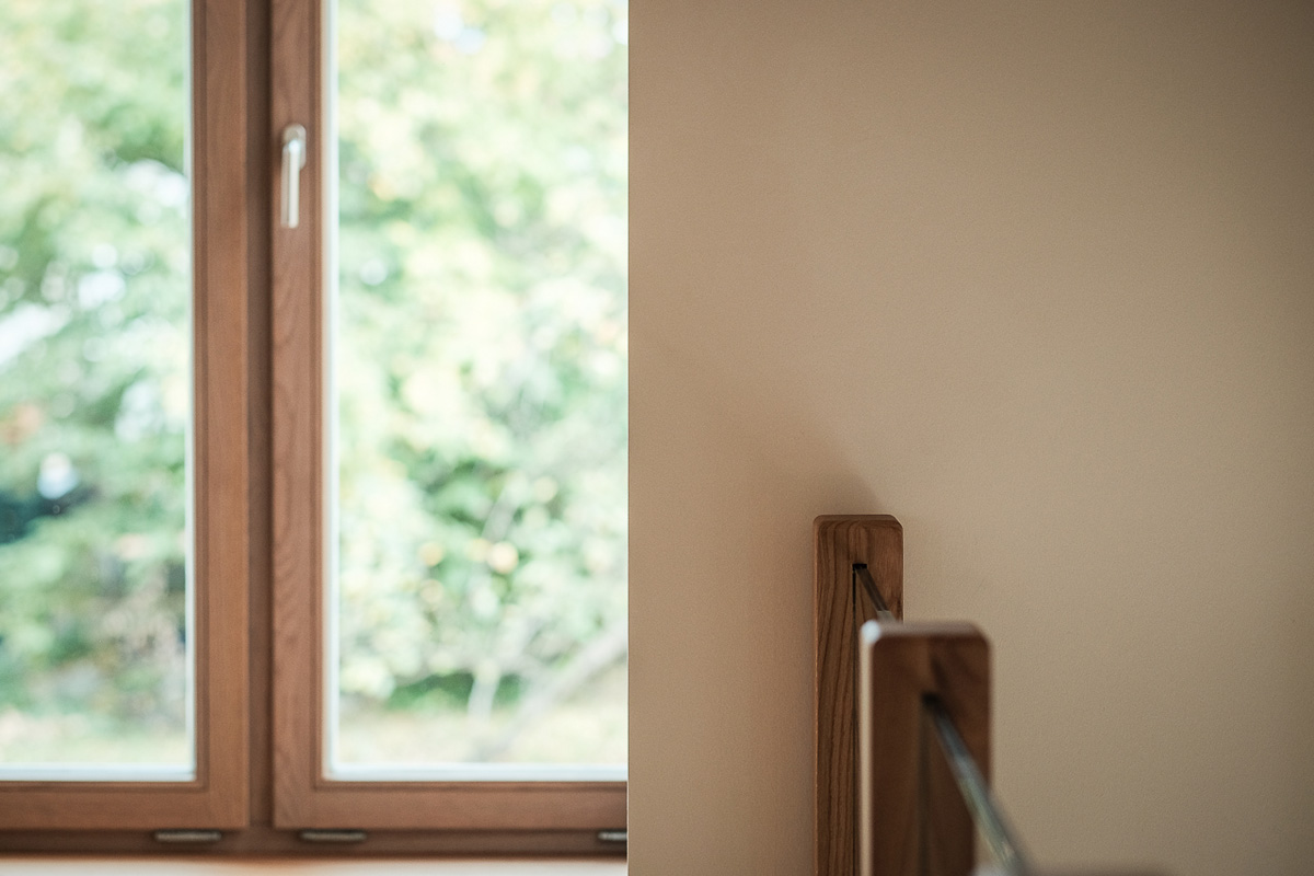 Im Obergeschoss wiederum ist dieser Vorsprung mit einer Sitzecke im Fenster ausgestattet, so dass man mitten im Baum zu sitzen scheint.