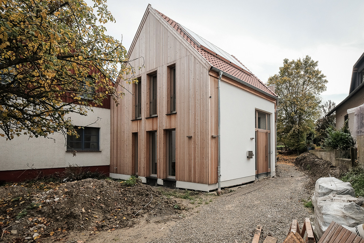 In enger Zusammenarbeit ist ein maßgeschneidertes Haus entstanden, das von außen damit glänzt, dass es sich in die bestehende Siedlungsstruktur einbindet und genauso auf dem Grundstück den bisherigen Bewohnern ihren Raum nicht streitig macht.