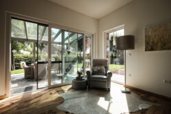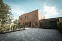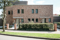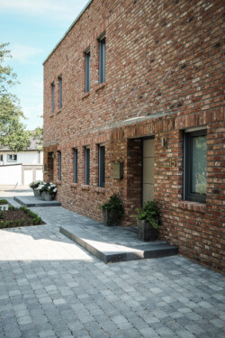 Hierbei war es beiden Generationen wichtig, trotz des gewünschten Miteinanders genügend Rückzugsmöglichkeiten zu bekommen. So entstand der Gedanke, das Ganze als Doppelhaus umzusetzen, bei welchem beide Einheiten als abgeschlossenes Eigenheim fungieren, wenn gleich es genug Flächen zur offenen Kommunikation gibt.