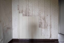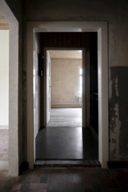 In aufwendiger Kleinarbeit wurden über Wochen und Monate hinweg Spuren der Vergangenheit an Wänden, Decken und Böden freigelegt. Anders als bei vielen Sanierungen stand nicht ein ästhetisch perfektes Ergebnis im Vordergrund, sondern der bewusste Erhalt von Nutzungsspuren – etwa Brandflecken der Häftlingsöfen oder der eingebrannte Abdruck eines Bügeleisens an einer Holzwand.