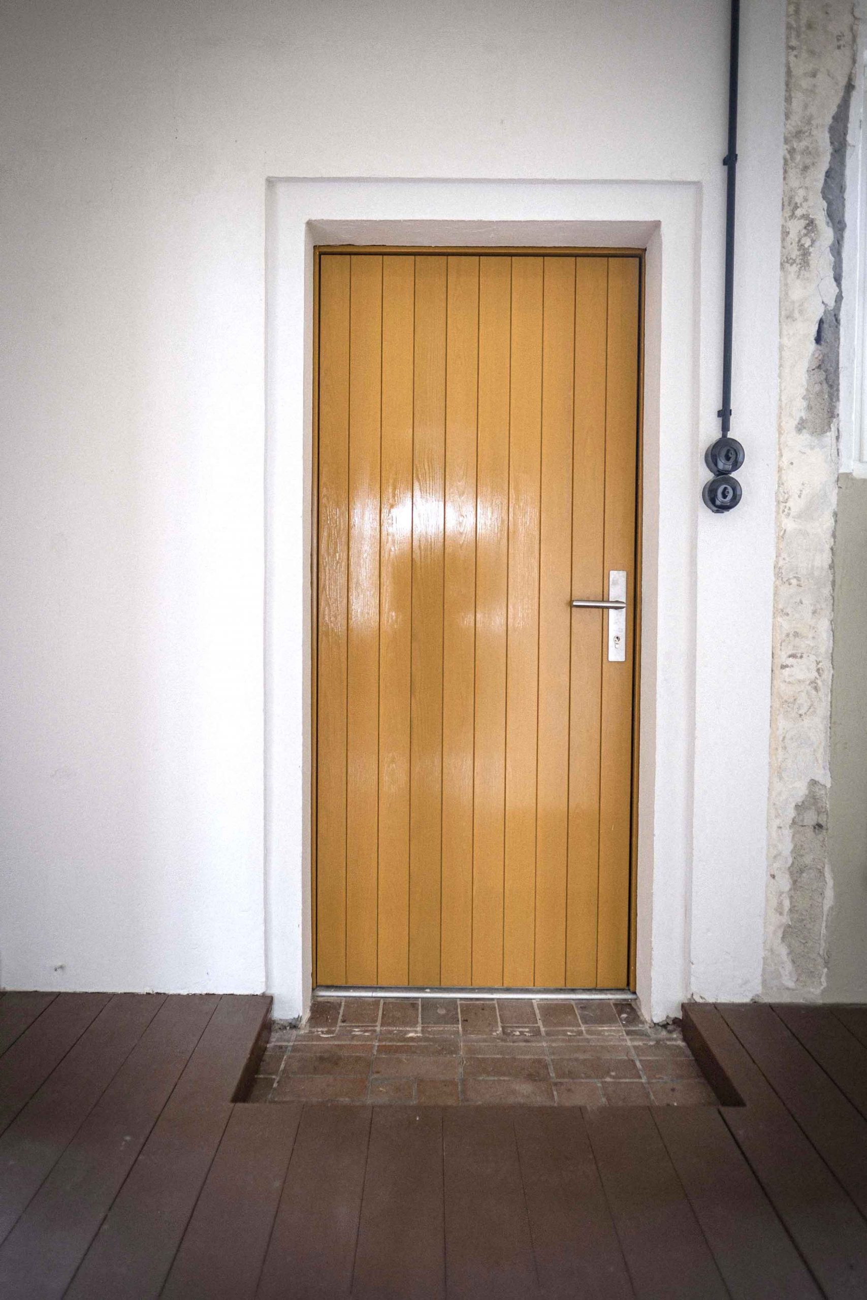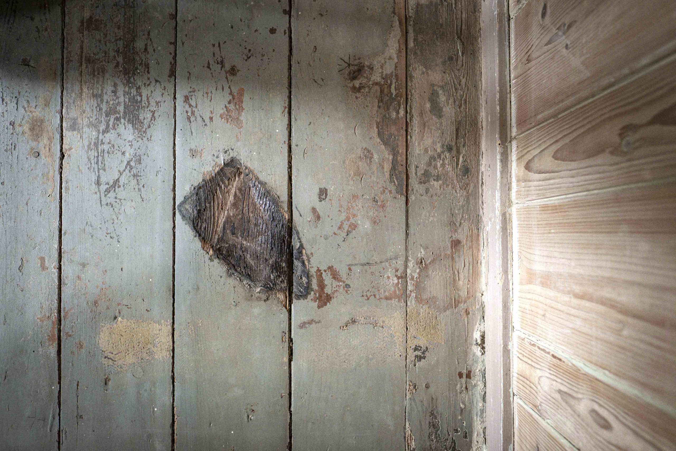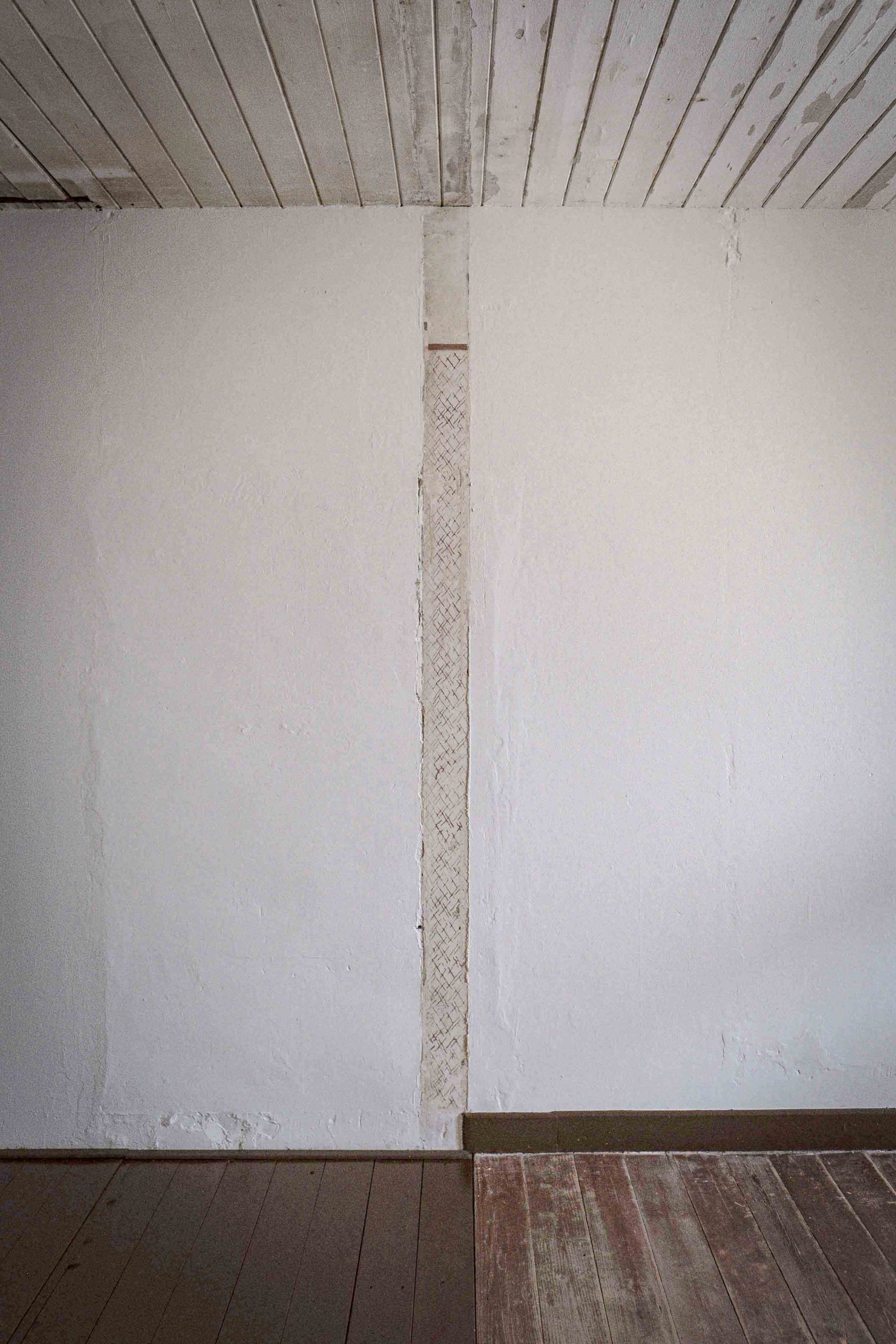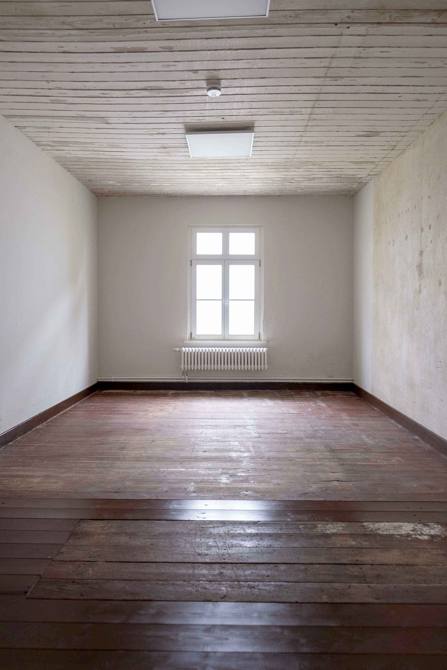In aufwendiger Kleinarbeit wurden über Wochen und Monate hinweg Spuren der Vergangenheit an Wänden, Decken und Böden freigelegt. Anders als bei vielen Sanierungen stand nicht ein ästhetisch perfektes Ergebnis im Vordergrund, sondern der bewusste Erhalt von Nutzungsspuren – etwa Brandflecken der Häftlingsöfen oder der eingebrannte Abdruck eines Bügeleisens an einer Holzwand.