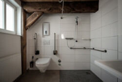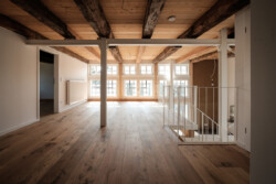Durch die sensible Einbindung des Neubaus in die vorhandene Struktur entsteht ein neues bauliches Gefüge, das die städtebauliche Situation in diesem Bereich deutlich aufwertet. In der sanierten Fachwerkscheune werden künftig fünf Wohnungen sowie die Sozialstation der Caritas Soest untergebracht. Im Neubau entstehen vier Wohneinheiten im Erdgeschoss, sieben WG-Plätze sowie sieben Mikro-Apartments im Dachgeschoss.