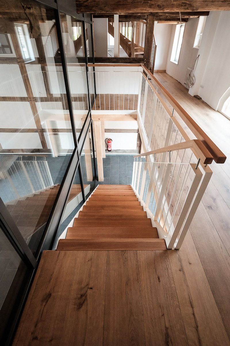 Mit dem Erwerb des Gebäudes samt Grundstück durch Herrn Matthias Schlüter im Jahr 2014 kam Bewegung in die Sache: Gemeinsam mit dem Geseker Unternehmer entwickelte das Architekturbüro Gröne Architektur GmbH ein Nutzungskonzept zur Revitalisierung der Fachwerkscheune. Dafür entstand ein Entwurf, der sowohl die denkmalgerechte Sanierung als auch einen ergänzenden Neubau im rückwärtigen Grundstücksbereich vorsieht.