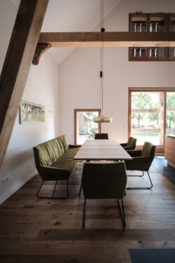 Die Familie bringt der historischen Bausubstanz auf dem Hof eine außergewöhnlich hohe Wertschätzung entgegen – und ein feines Gespür für deren Erhalt. Das spürt man als Besucher sofort, spätestens aber beim Anblick des liebevoll und mit viel Eigenleistung in den 1970er-Jahren restaurierten Hofspeichers. Mit seinem Baujahr 1577 gilt er als der älteste seiner Art im Delbrücker Land.